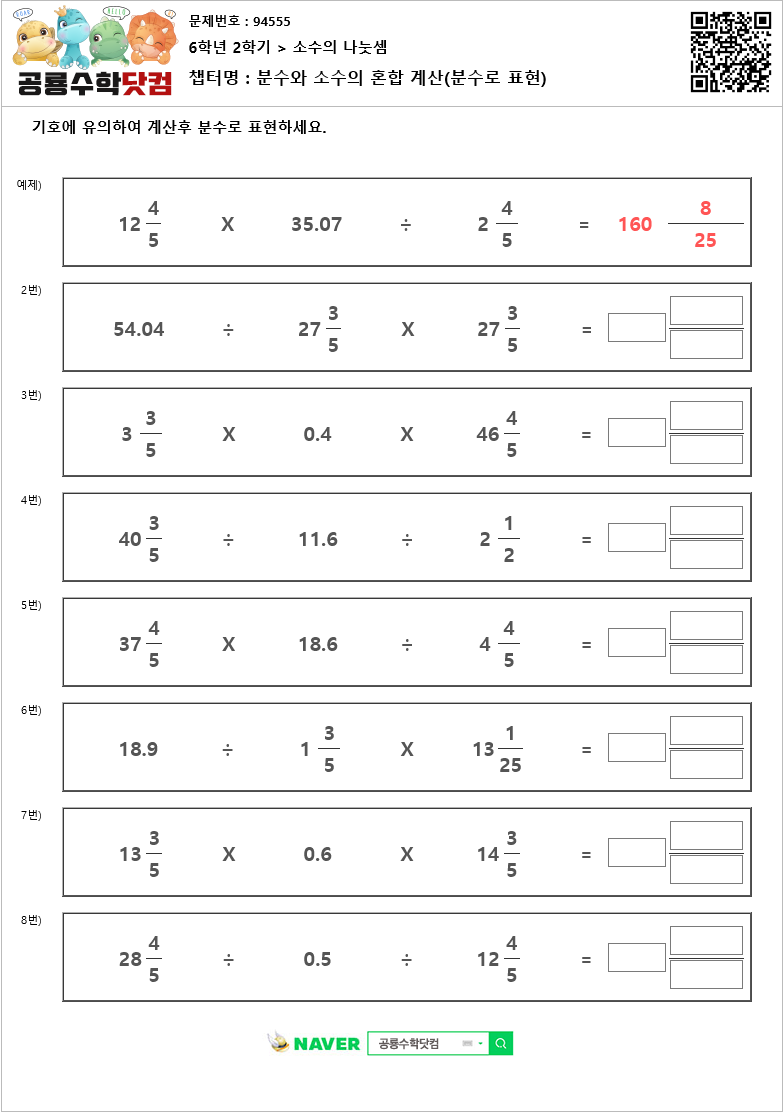 챕 터 명 : 분수와 소수의 혼합 계산(분수로 표현)