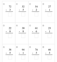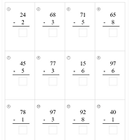 두자릿수와 한자릿수 뺄셈 프린트 학습지는 10자리 이하 뺄셈을 완전히 터특한후 학습하셔야 합니다.