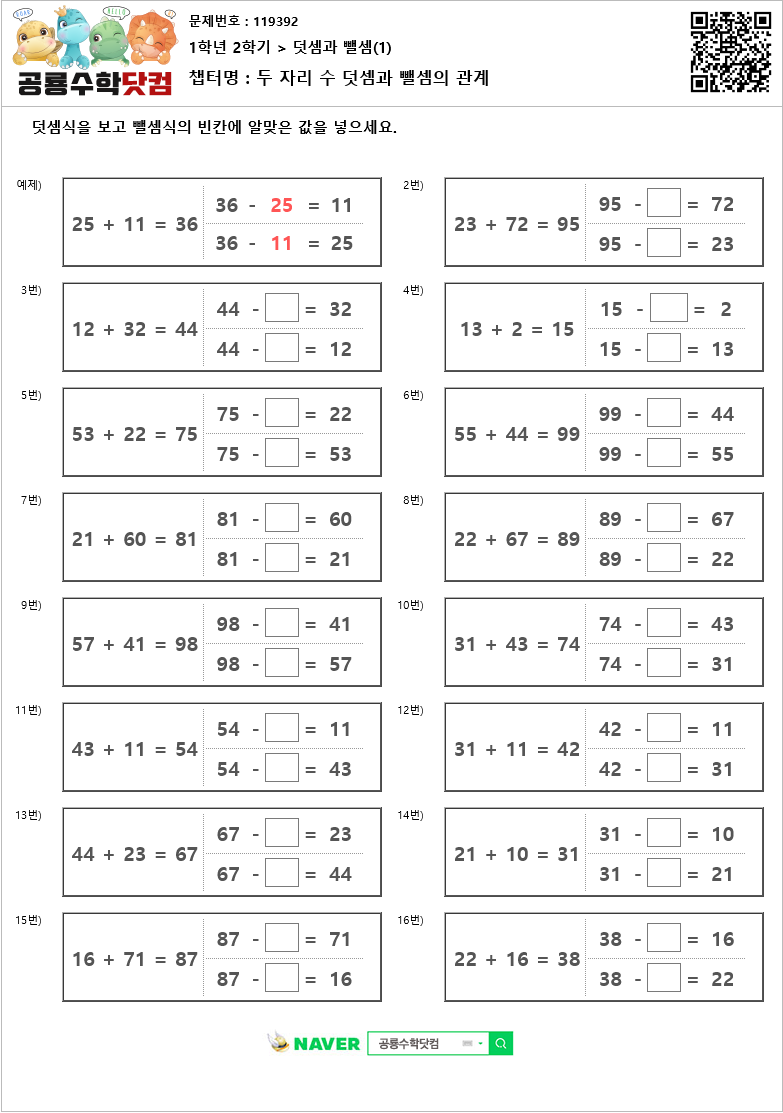 두 자리 수 덧셈과 뺄셈의 관계