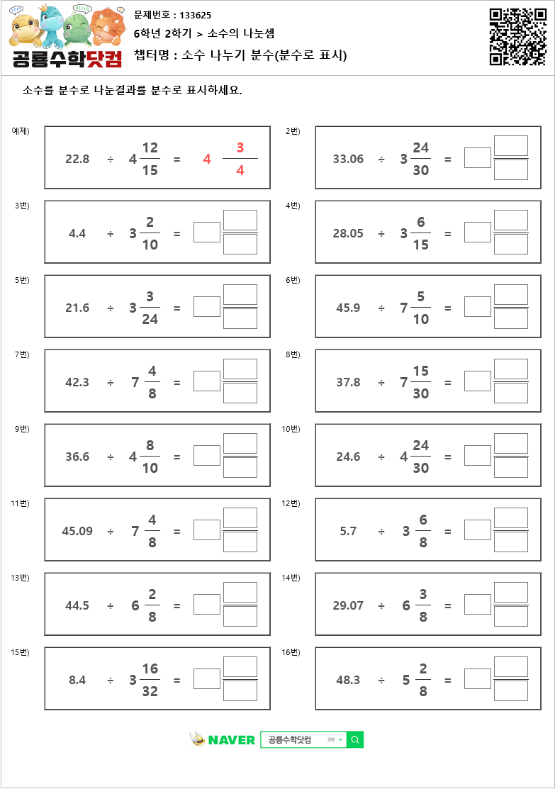 챕 터 명 : 소수 나누기 분수(분수로 표시)
