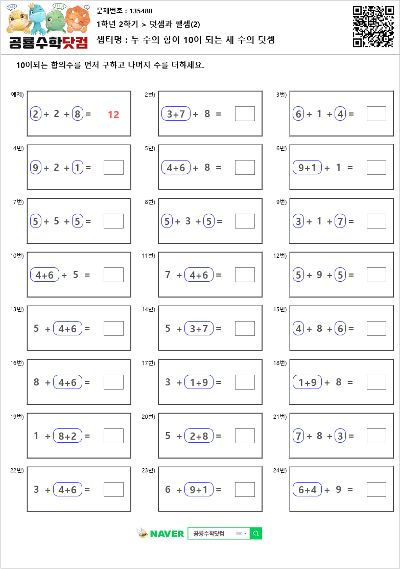 본 문제지는 공룡수학닷컴에서 제공하는 초등학교 무료 수학 연산문제 프린트 학습지 입니다.