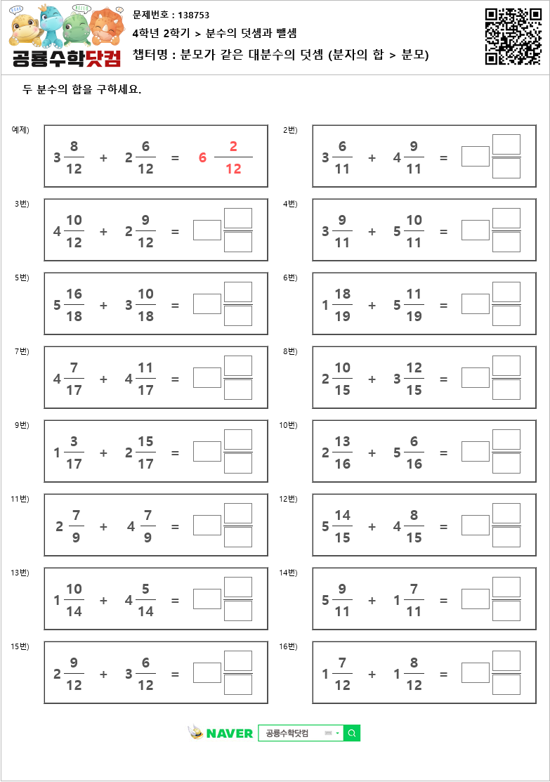 챕 터 명 : 분모가 같은 대분수의 덧셈 (분자의 합 > 분모)