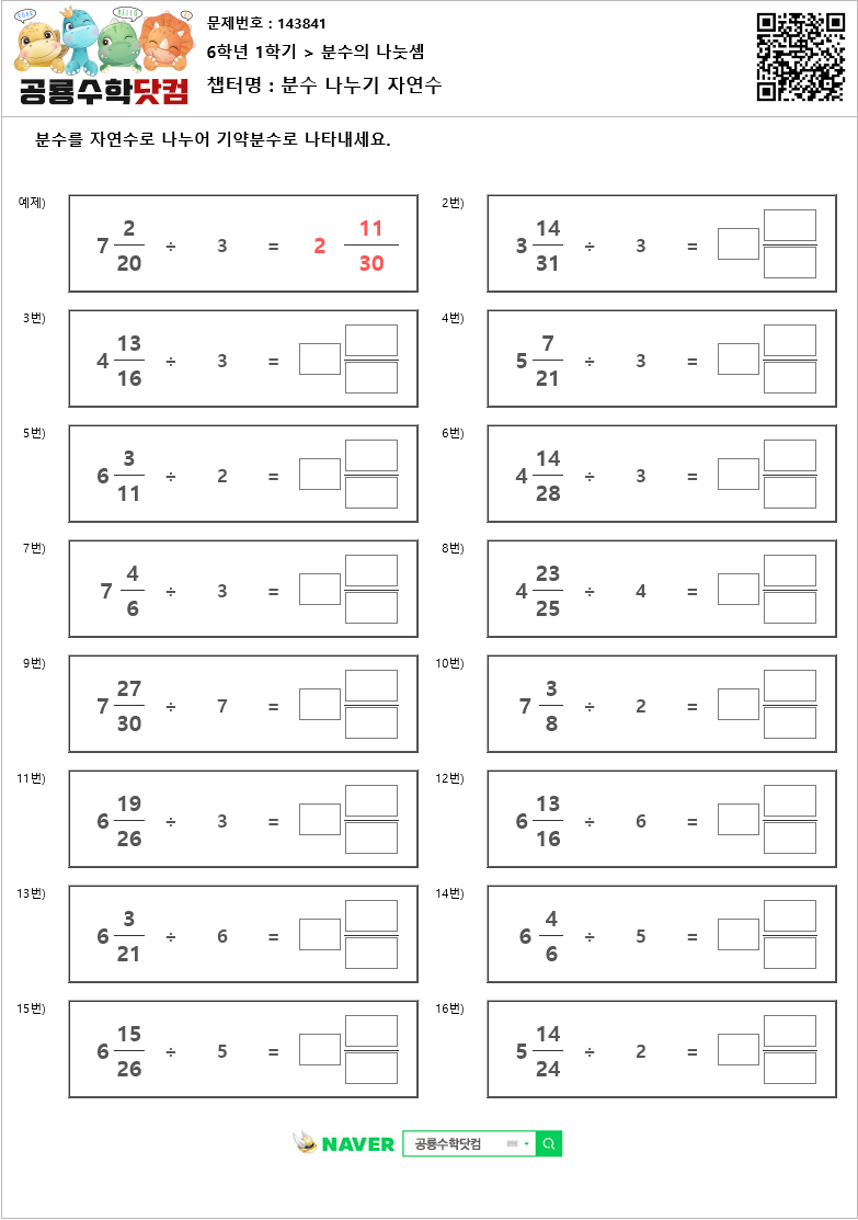 분 류 명 : 초등학교 6학년 1학기 분수의 나눗셈