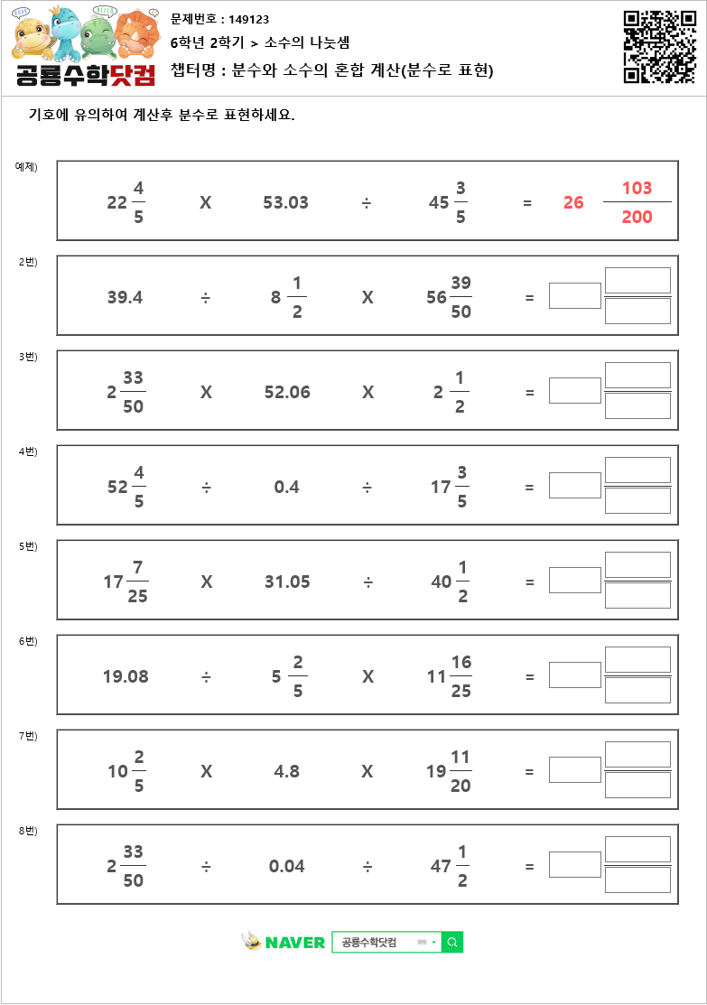 챕 터 명 : 분수와 소수의 혼합 계산(분수로 표현)