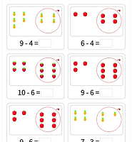 숫자로만 구성된 뺄셈 프린트를 접하기전에 그림을 이용한 뺄셈 프린트 학습지를 먼저 학습하게 하여 어린이 들이