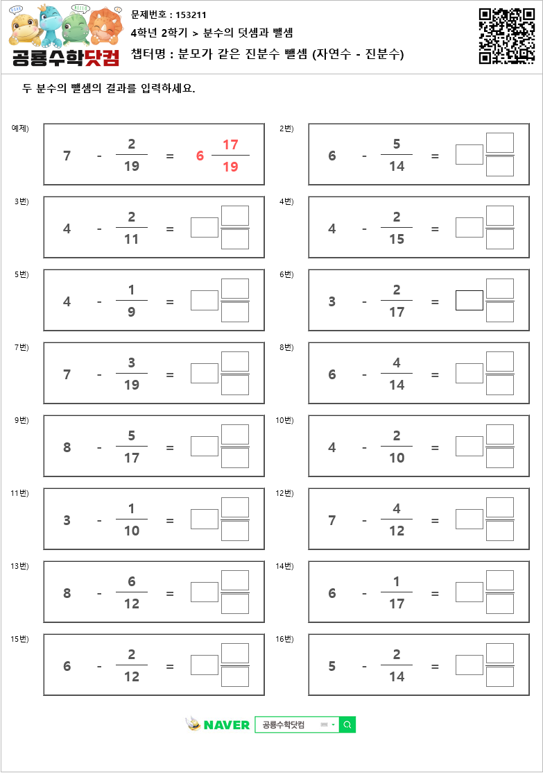 분모가 같은 진분수 뺄셈 (자연수 - 진분수)