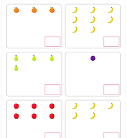 네모안의 전체 과일 갯수를 세어본 후 오른쪽 아래 빨간 상자안에 과일의 갯수에 해당하는 숫자를 기입하면 됩니다.