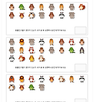 네모안의 전체 동물친구들의 갯수를 세어본 후 오른쪽 아래 빨간 상자안에 동물친구들의 갯수에 해당하는 숫자를 기입하면 됩니다.