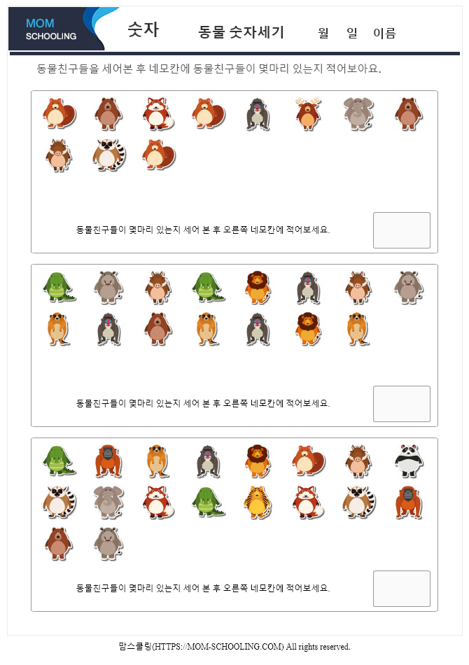 | 맘스쿨링-10이상 동물 숫자세기 무료프린트 학습지5 (0) | 2019.03.29 |