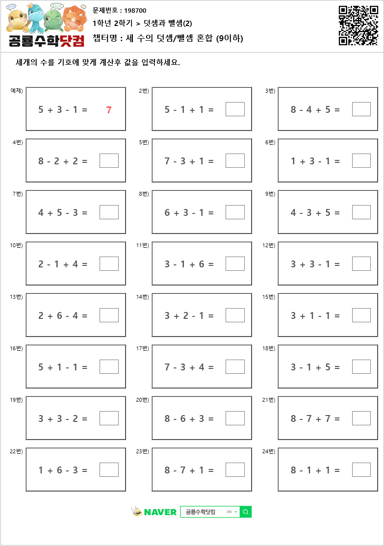 챕 터 명 : 세 수의 덧셈/뺄셈 혼합 (9이하)