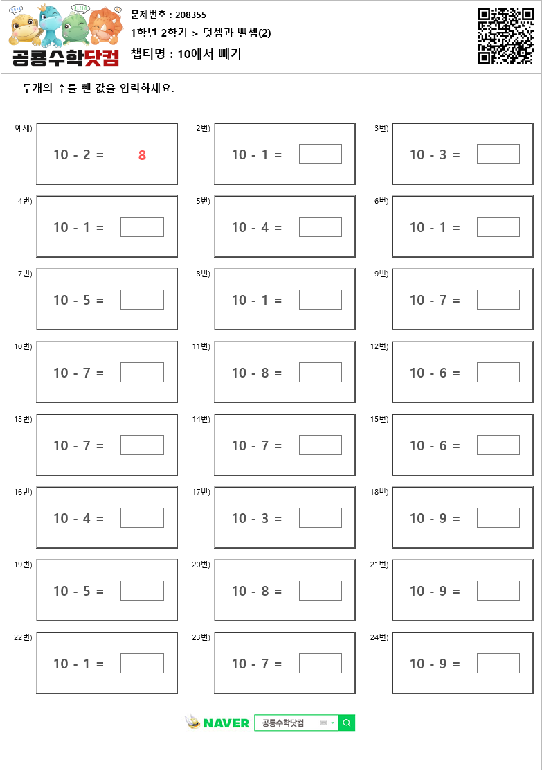 본 문제지는 공룡수학닷컴에서 제공하는 초등학교 무료 수학 연산문제 프린트 학습지 입니다.