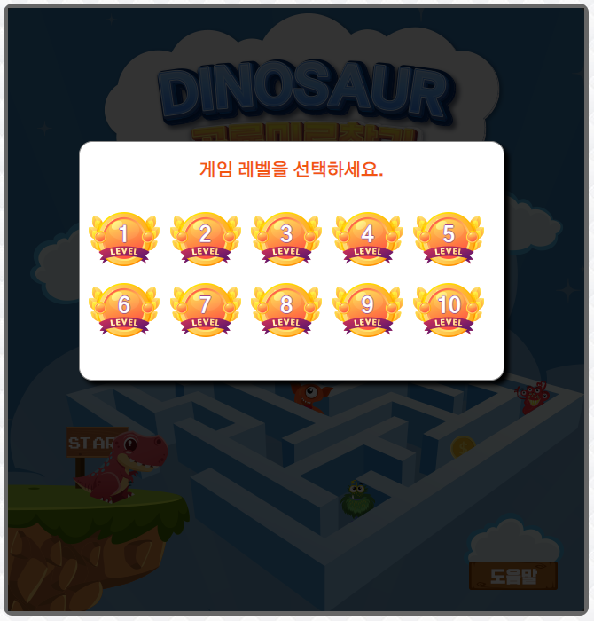 이번에 공룡타자연습에서 초등학생을 위한 미로찾기 프로그램을 만들어서 아이들이 레벨에 맞추어 미로찾기를 할수 있는