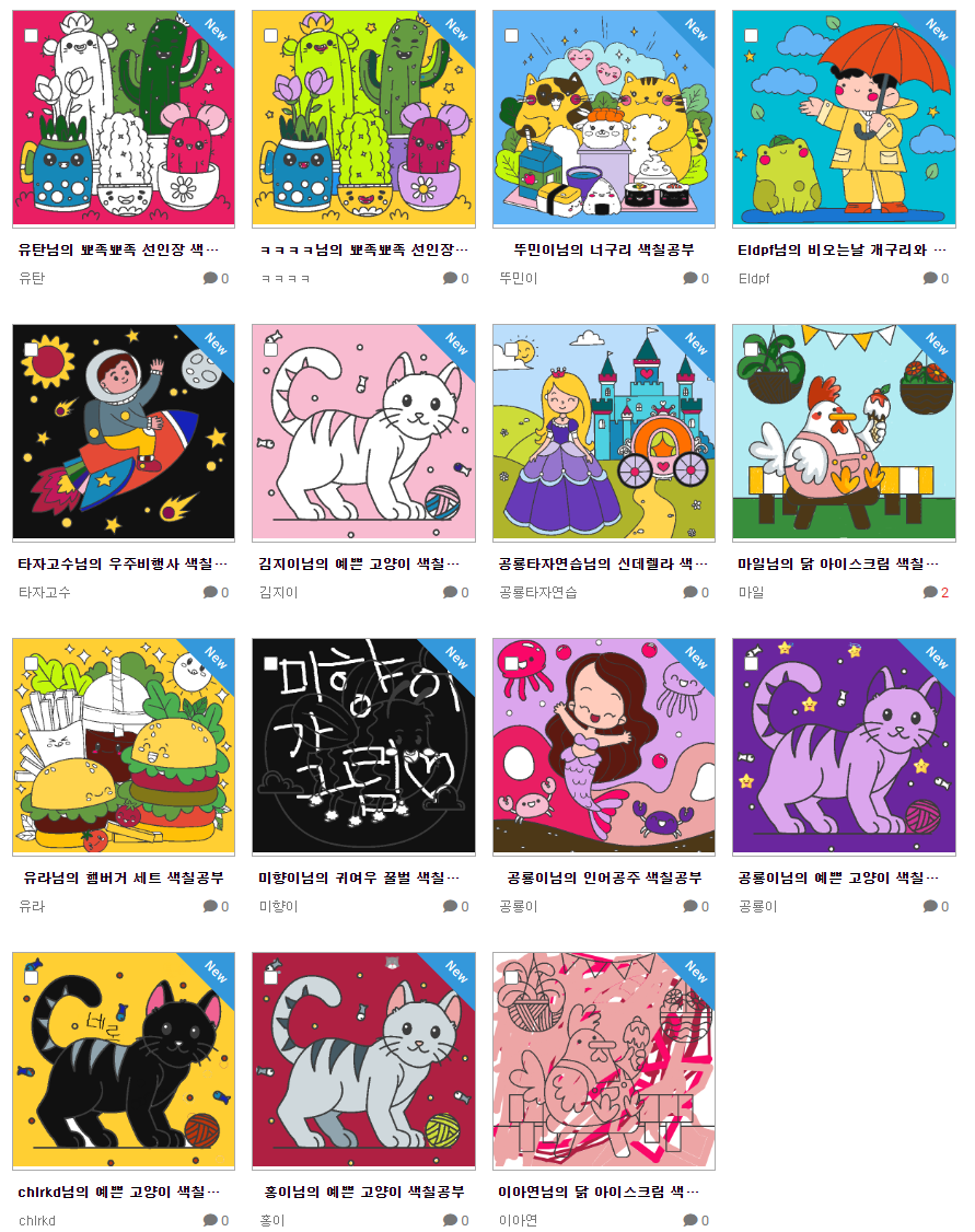 저장이 완료되면 저렇게 회원작품 게시판에 등록이 되어서 언제든 다시 보고 프린트할수가 있어요.