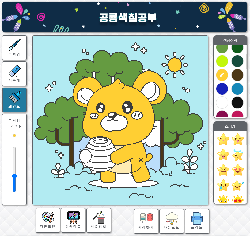 중요한거! 색칠공부를 다했으면 꼭 "저장하기" 버튼을 눌러야 저장이 되요. 그리고 내 컴퓨터로 다운로드도 할수있고