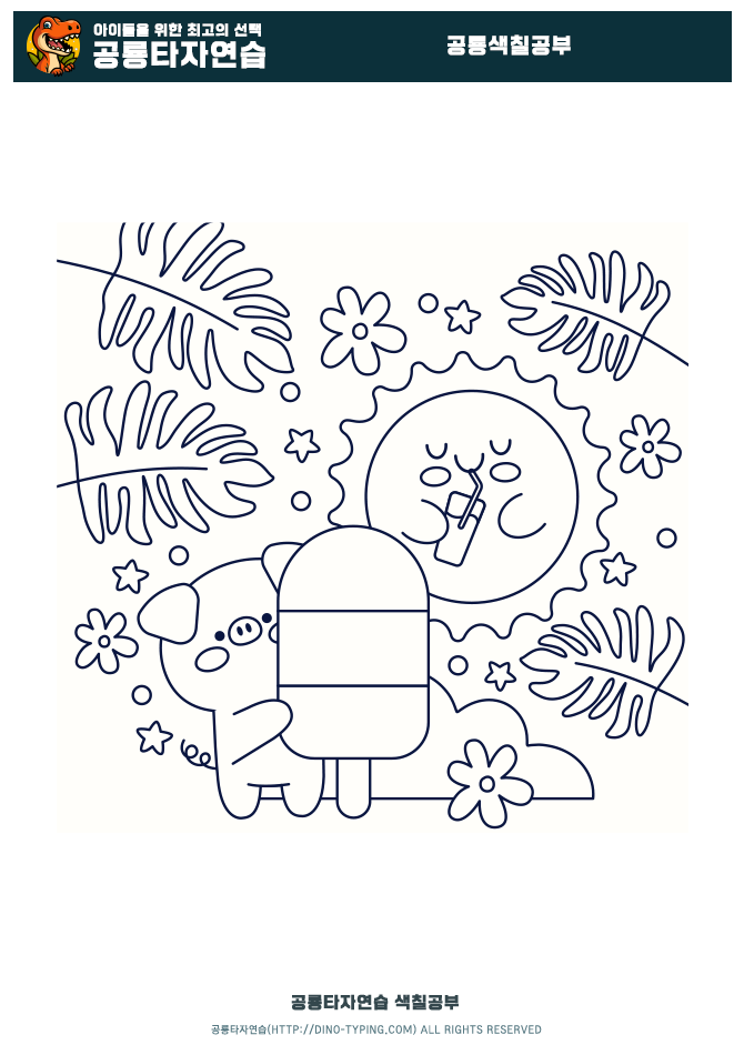 돼지가 돼지바를 들고있네요 여름에는 역시 돼지바가 최고에요 ^^ 예쁘게 색칠해 봐요