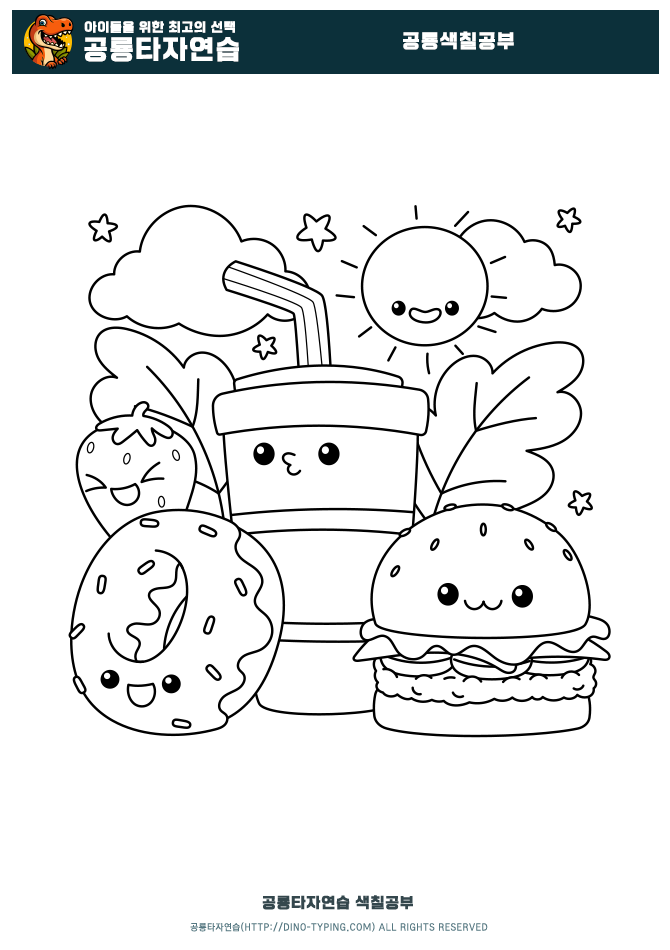 정말 좋아하는 음식들이 가득해요 우리같이 이 음식들을 더 맛있게 색칠해봐요