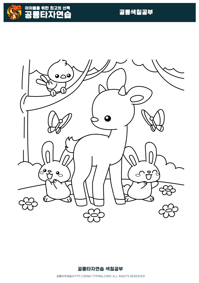 너무너무 귀여운 아기사슴이 토끼들과 놀고 있어요 정말 귀여워요 우리 사슴과 토끼를 멋지게 색칠해봐요 ^^